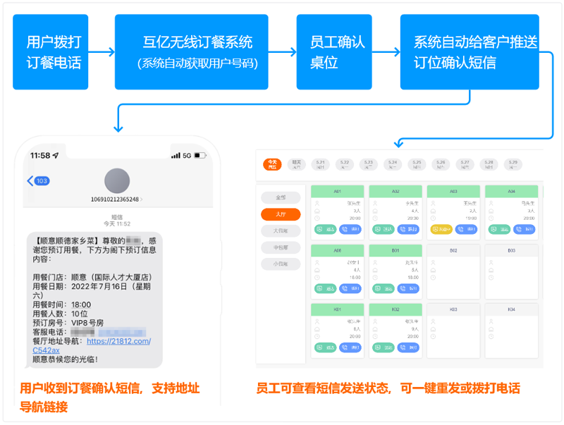 互億無線提供飯店預(yù)訂整體解決方案,管理員在訂餐軟件上設(shè)置訂座信息后,系統(tǒng)自動調(diào)用預(yù)訂成功短信通知模板,給用戶發(fā)送預(yù)訂短信。